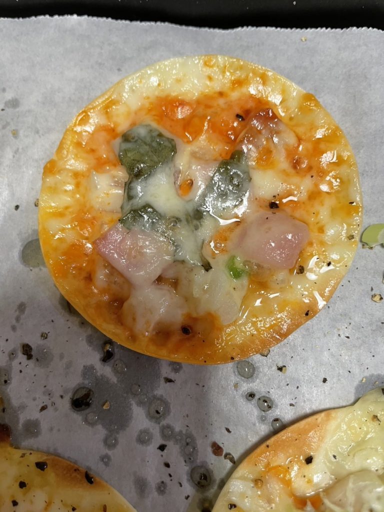 【レシピ】バジルを使った餃子の皮ピザ レシピ 2024.08.10 餃子の皮に、オーロラソースにバジルとみじん切りの玉ねぎとベーコンチーズをのせて、オーブンで焼きます。 ※バジルを使ってもらいました。 Мさんより